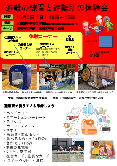 10月5日(日)「避難の練習と避難所の体験会」を開催します